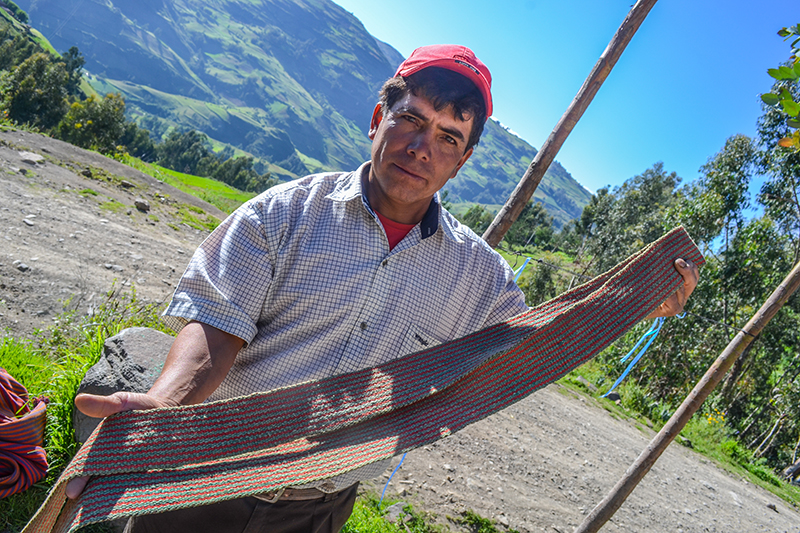 Así tenemos por ejemplo que los hombre usen sus ponchos, de colores cálidos como el azul añil, el marrón, el rojo indio, las alforjas que usan todo poblador, para trasladar alimentos, instrumentos de trabajo, plantas medicinales, fruta, etc., la famosa faja, que sirve como cinturón para amarrar en la cintura el pantalón el hombre y la mujer sus polleras. Todos estos productos forman parte de un contexto cultural en el cual ha intervenido para su confección los conocimientos, experiencia, técnicas que adquirieron de sus padres, abuelos, es decir es una trasmisión generacional que va enseñándose desde el hogar a la familia.